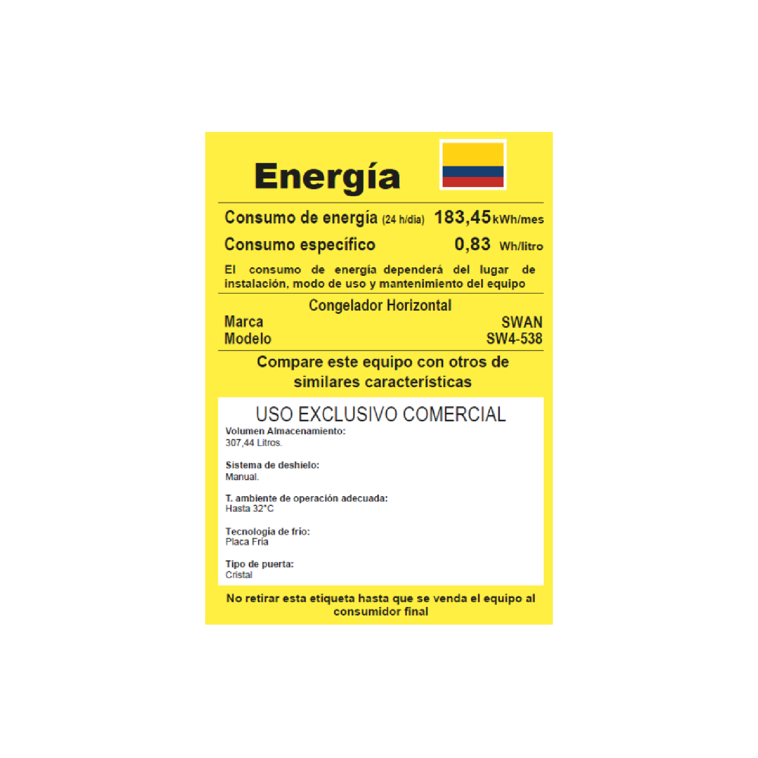 CONGELADOR SWAN CHV SW-538 TAPA DE VIDRIO