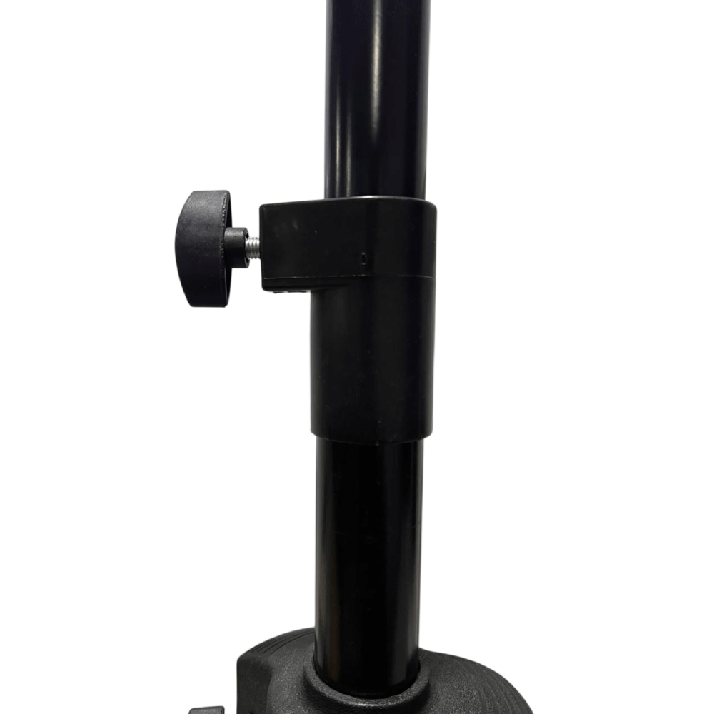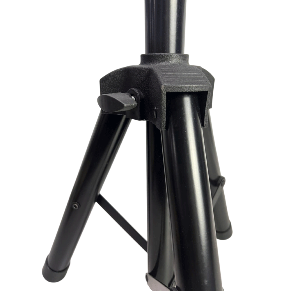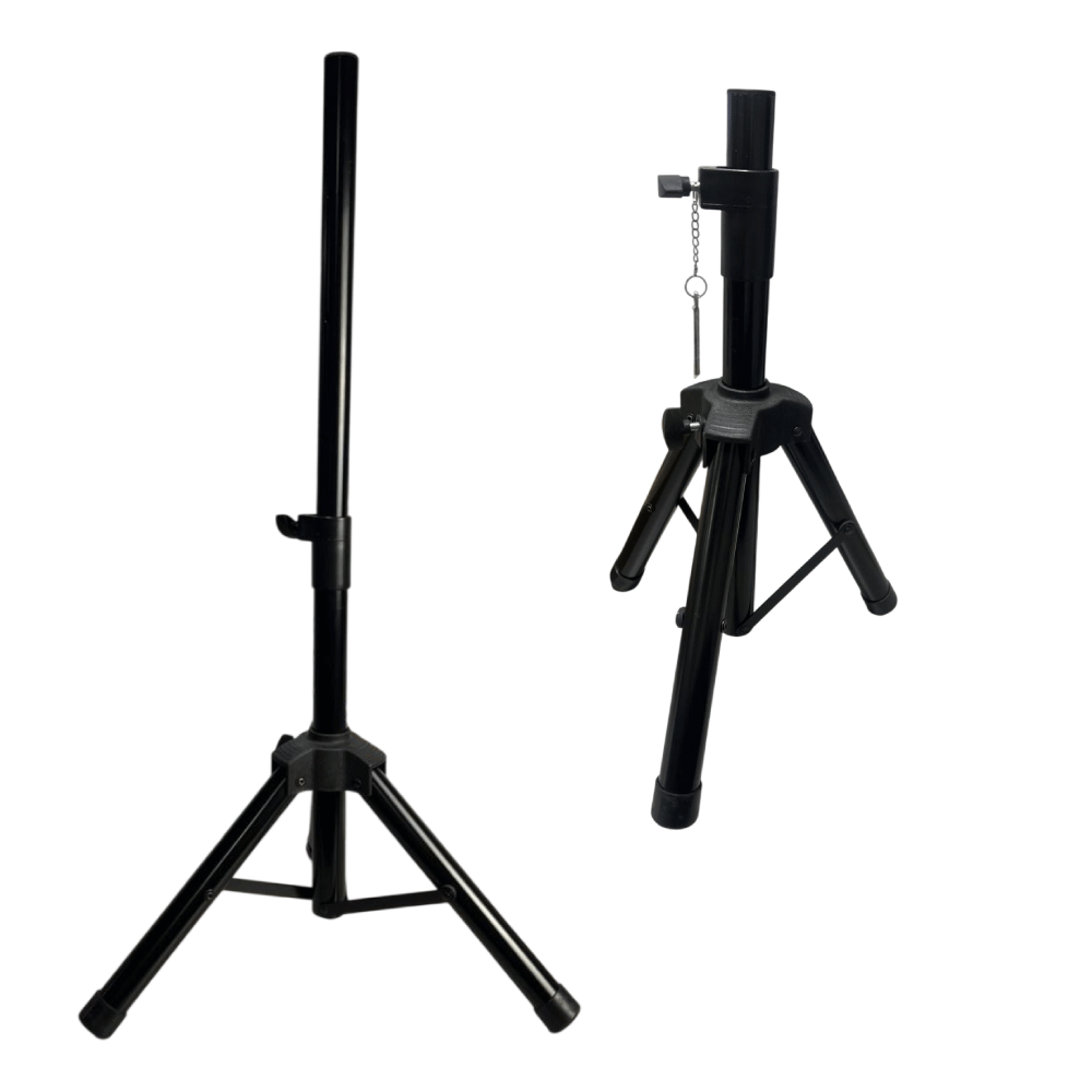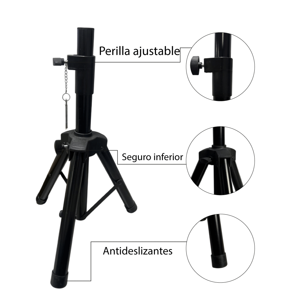 ste trípode para parlante ofrece una base estable y resistente, ideal para eventos, presentaciones y sonido profesional. Su estructura metálica garantiza durabilidad y soporte firme. Cuenta con sistema de ajuste en altura mediante perno de seguridad y perilla de presión. Sus patas reforzadas brindan equilibrio incluso en superficies irregulares. Una solución confiable para montar parlantes de manera segura y eficiente.
